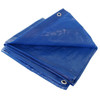 This Plastic Blue Tarp is 8' x 10'. The tarp is 5 millimeters thick, and has grommets every 36 Inches. It is also waterproof, mildew resistant and super UV resistant.